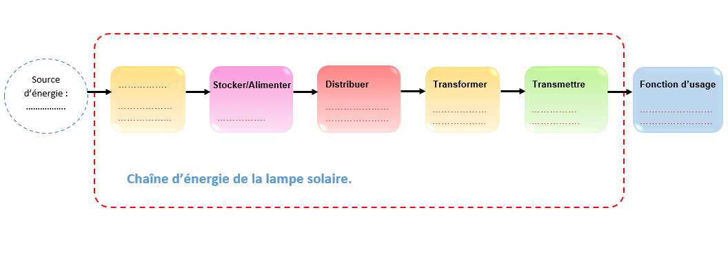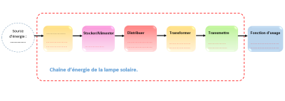 Imprimez la chaine d'énergie de la lampe solaire, en couleur.