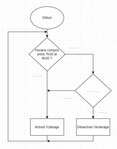 Exemple : Organigramme du système d'éclairage, avant les modifications envisagées lors de la séance n°1 :
