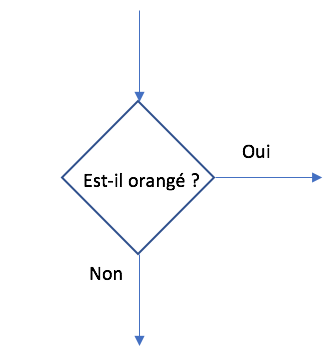 Le losange possède toujours une entrée et deux sorties. Ces deux sorties correspondent aux résultats possibles de la condition et ne peuvent prendre que les valeurs "vrai" ou "faux".