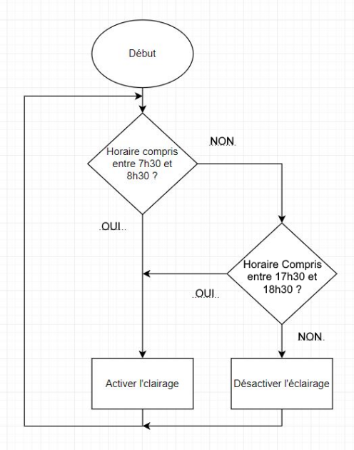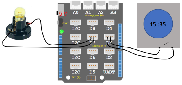 On peut remarquer que la programmation nécessite de connaître les broches utilisées sur la partie commande (ici, la broche D3 pour le programmateur horaire et la broche D7 pour l'éclairage).