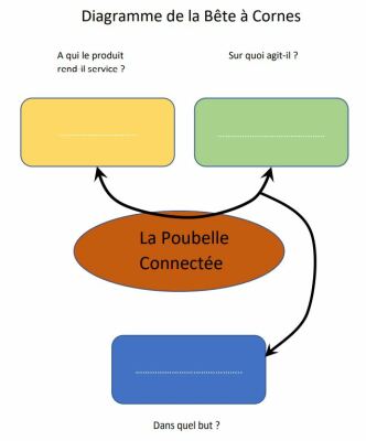 Recopiez et complétez la "Bête à corne" de la poubelle connectée sur votre feuille.